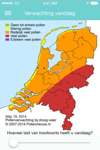 Pollennieuws werkt op iOS 12.1.2 of hoger. De huidige versie van het programma is 5.0.0 en u kunt het alleen in het Nederlands uitvoeren.